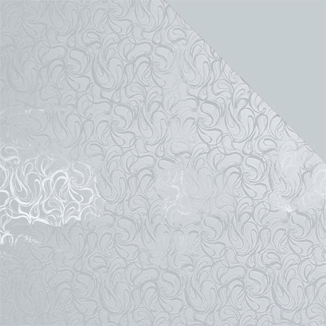 Silver swirl effect one side, and solid Silver on the reverse, making it a double-sided gift wrap.